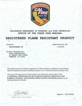 Flamex PA ha sido aprobado para el uso por la jefatura de bomberos de California y Nueva York y ha sido probado de acuerdo a ASTM E84 Clase A.